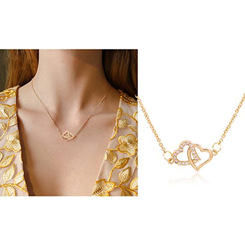 -. Title : Shoopic Crystal Heart Infinity Moon Star Pendant Golden Symbol Chain Necklace for Women