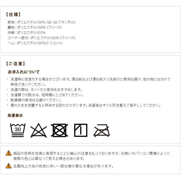 ●表地:ポリエステル100%(はっ水フランネル)