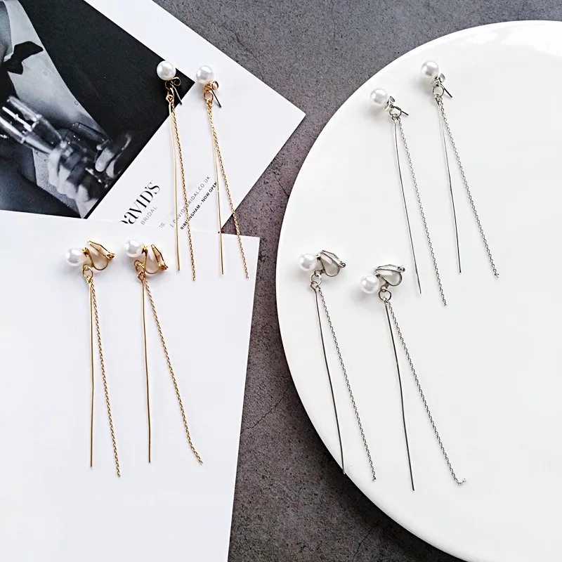 Pedant shape:Metal Tassel Line Thread Threader Long Clip Earring Non Pierced Hole