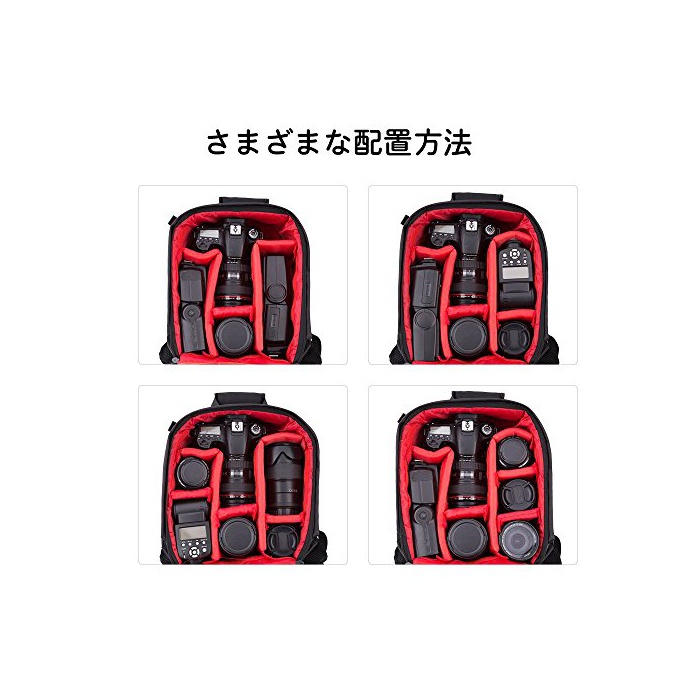 큰 용량:표준의 줌렌즈를 탑재했 DSLR카메라(캐논,니콘,소니,올림푸스,펜탁스,그 외의 DSLR)고, GoPro카메라 시스템,프로 슈즈 마운트 플래쉬 유닛,라디오 트리거,미러리스 카메라,및 렌즈,전지와 충전기,케이블 등의 외에의 악세사리를 유지에 옵니다.