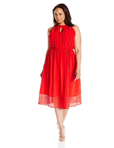 Product DescriptionSleeveless solid soho crepe midi dress with keyhole on neck and cinched waist0