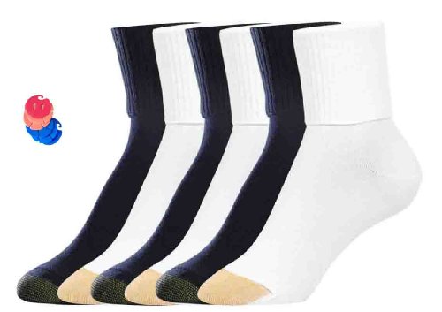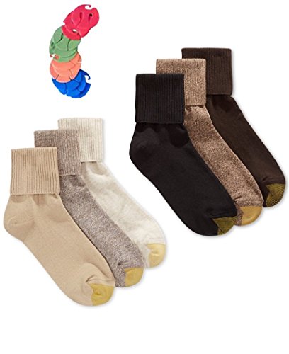 Gold Toe Women's 6 Pack Turn Cuff Socks / 6 Free Sock Clips Included ($5 Value)