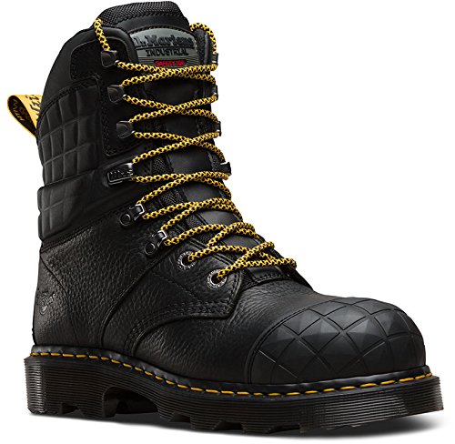 Studio : Dr. Martens Work Publisher : Dr. Martens Work Binding : Apparel Product Description Dr. Martens' Moreton Boot is an 8-tie lace-to-toe, high-cut, rugged boot. It's made of soft, industrial-grade, tumbled leather, ideally designed for service industries. It provides excellent cushioning and comfort with its padded collar and a classic PVC welt construction coupled with an integrated EVA core. It features high-grade lacing, a lighter alloy toe cap, and a specifically designed outsole to resist clogging while providing high durability and slip-resistance. The rubber toe cap delivers increased toughness. Import. 0