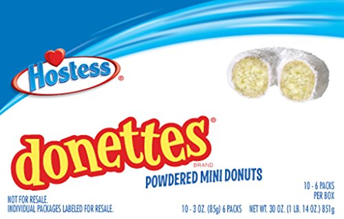 -. Feature : Delicious white cake covered with sweet powdered sugar / One box includes 10 packs of Donettes with six Donettes in each pack / An incredibly tasty on-the-go snack for morning, day or whenever your sweet tooth calls / 0g trans fat / Made by Hostess, baker of America's favorite snack cakes