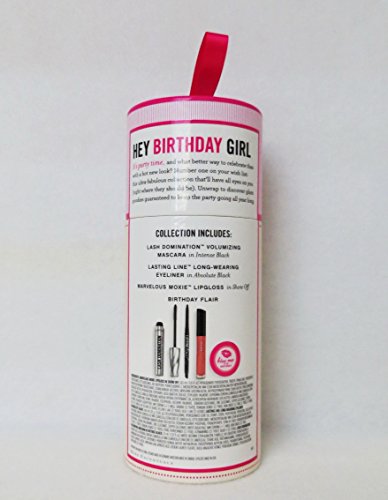 -. Feature : bareMinerals Kiss Me, It's My Birthday 4 Piece Set: Lash Domination, Moxie Gloss, Long Wearing Eyeliner, Birthday Flair Pin