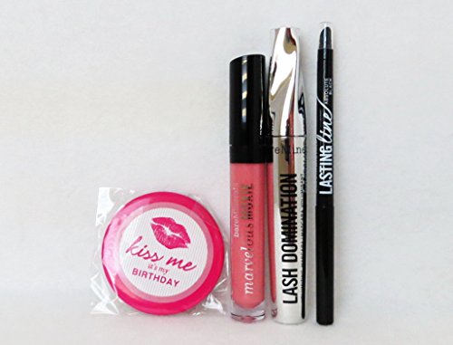 -. Title : bareMinerals Kiss Me, It's My Birthday 4 Piece Set: Lash Domination, Moxie Gloss, Long Wearing Eyeliner, Birthday Flair Pin