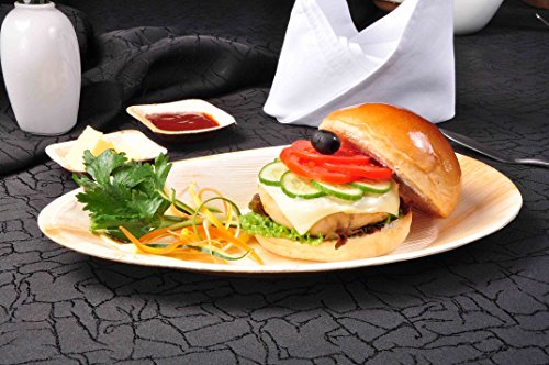 GREEN ATMOS 25 PACK - 12" OVAL PARTY/ WEDDING SALAD / STARTER / DESSERT / SIDE TRAY / PLATE BIODEGRADABLE, COMPOSTABLE AND ECO-FRIENDLY DISPOSABLE ARECA PALM LEAF PLATES