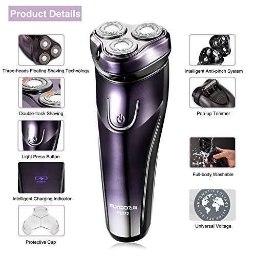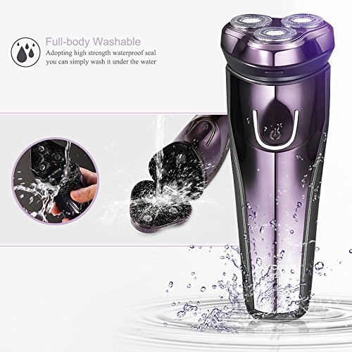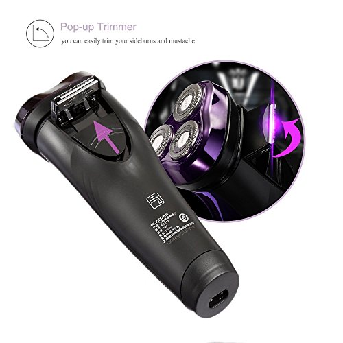 Men's Electric Razor, 3 Floating Blades Mens Electric Shavers with Pop-up Trimmer Rechargeable Waterproof Washable Rotary Shaver, Purple