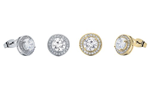 -. Title : NYC Sterling Set Of Two Round Halo Stud Earrings Collection