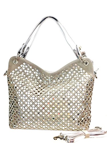 -. Brand : ZZFAB -. Department : womens -. Feature : Synthetic leather / Zip top closure, outside back zipper pocket. Inside zipper pockets, zip wall pocket and cell pouch / Removable double handles , shoulder drop 8¡±, extra shoulder handle / Size: 15 W x 11 H x 4 D" / Ship from US -. ProductGroup : Shoes -. ProductTypeName : HANDBAG -. Title : Zzfab Mirror Rhinestone Bling Purse