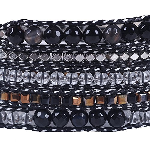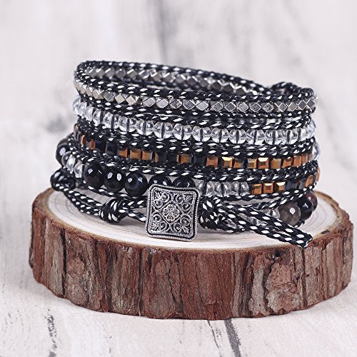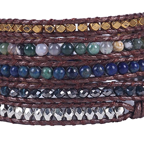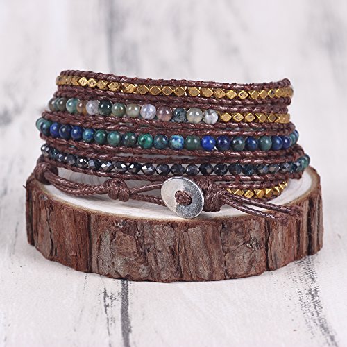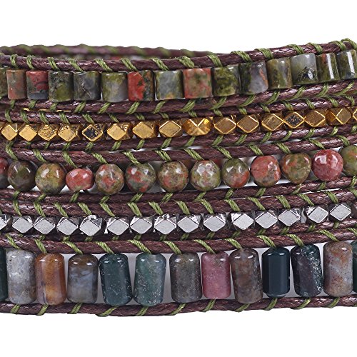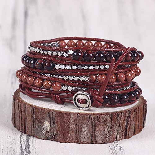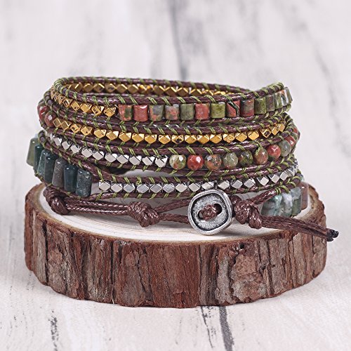 -. Feature : Decoration:100% hand made with incredible focus on details.This exquisite handmade leather wrap bracelet has swirls turquoise colored beads, Beautiful color shows Unique Temperament , Easy for dressing match,such as jeans, dresses exotic style and anything you'll wear. / Package:Free Gift Box Included, Placed in a beautiful gift box with well package. Great for gifting. Items are mailed in bubble envelopes for extra safety. Large orders are carefully packed and shipped in sturdy corrugated boxes. / Material : Imperial Jasper, Tiger Beads, Zinc beads,turquoie, triple, rain forest, Hematite. / Size:Metal oval plated Snap Button Lock Adjustable,Hand-woven Bracelet. Handmade bracelet wraps nearly every wrist for 3 around.Oval button with 3 adjustable closures,If you do not need the additional openings,simply cut them off! Button measures 3/4 inch (18mm). / Product time:These Bracelets are specially designed, Limited number. If you need more. Please allow 3 to 5 business days for items to be made P.R.Ior to shipment. Order early if you have a deadline! Rushed production time is available for an extra fee.