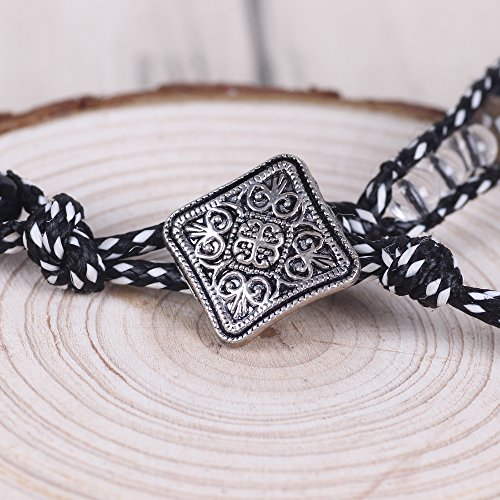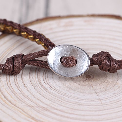 -. Title : Bonnie Twine Braided Prayer Bracelet Flower of Life Metal Button Beaded Wrap