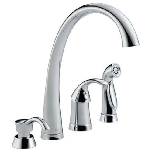 Delta 4380-SD-DST Pilar Single Handle Kitchen Faucet with Spray and Soap Dispenser, Chrome
