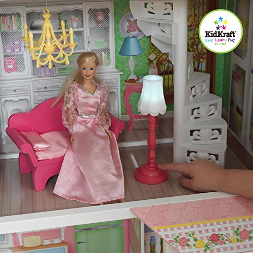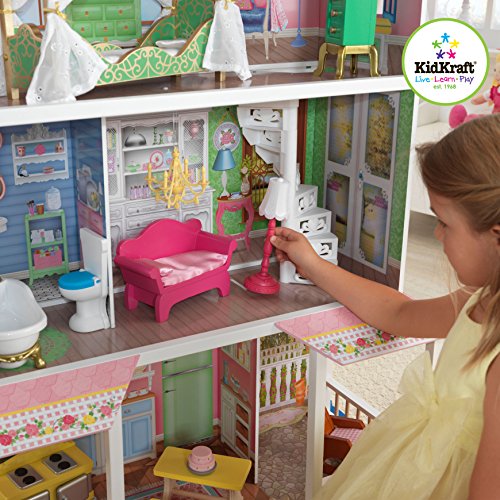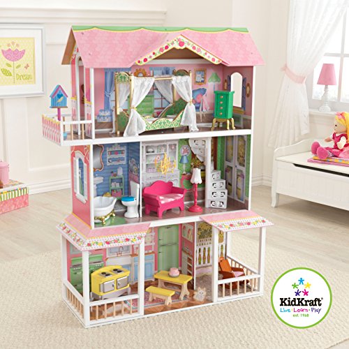 Das Puppenhaus Sweet Savannah von Kidkraft wird jedes Kinderherz höher schlagen lassen. Das stabile Holzhaus wird Ihren Kindern viele Jahre lang Freude bereiten und sie mit der einmaligen Dekoration jedes einzelnen Zimmers begeistern. Für bis zu 30 cm große Puppen 13 Möbelstücke, darunter ein Himmelbett und Esstisch mit Sitzbank 3 Stockwerke voller Spielspaß Kunststofftreppe Terrasse Ausreichend groß für ein Bespielen durch mehrere KinderFeature