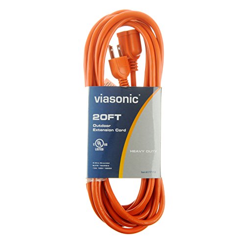 Viasonic Outdoor Extension Cord - 20FT - Heavy Duty & Durable, General Purpose, 16 Gauge, Orange Cord, UL Listed, by Unity