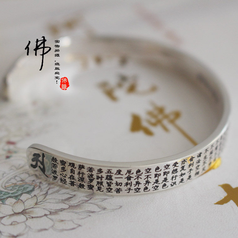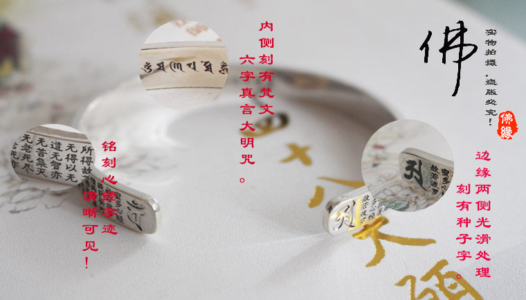 在师兄们的提议下,历经半年,佛缘惜独家设计,支持检验!心经全文,搭配梵文六字真言大明咒,以及真言种子字,圆满如法的手镯法宝。