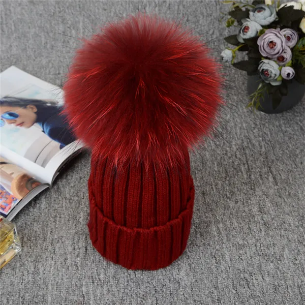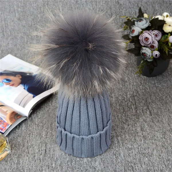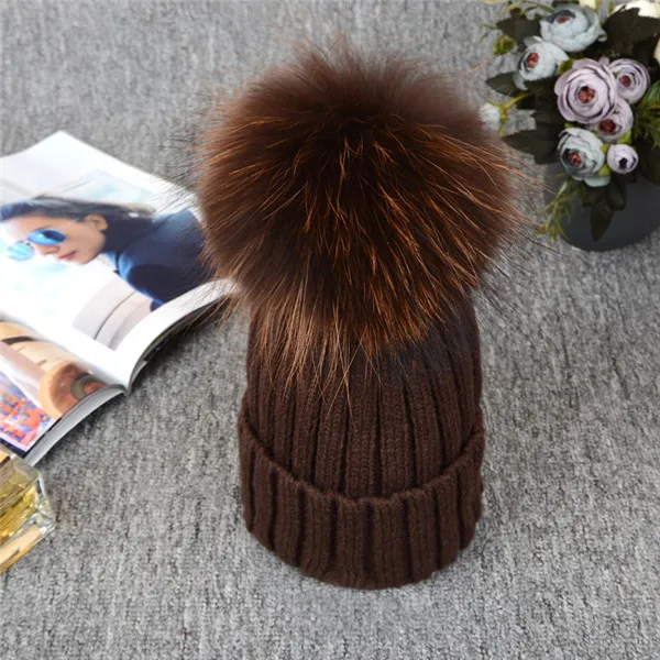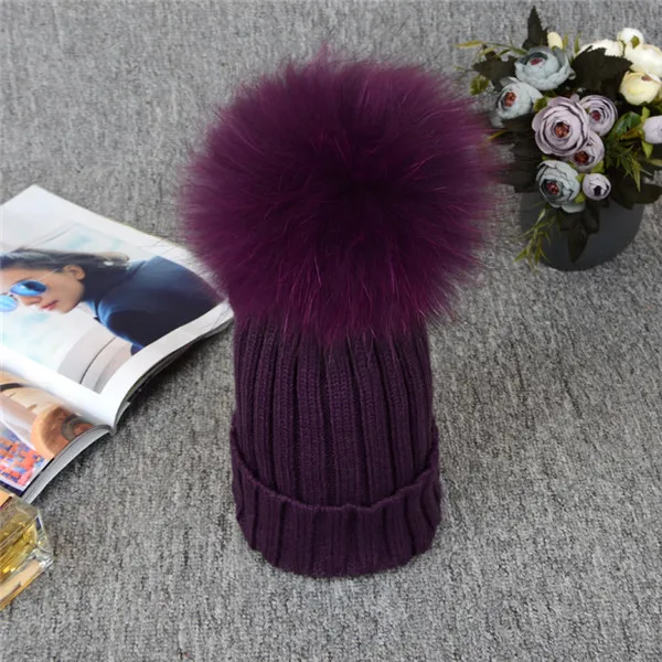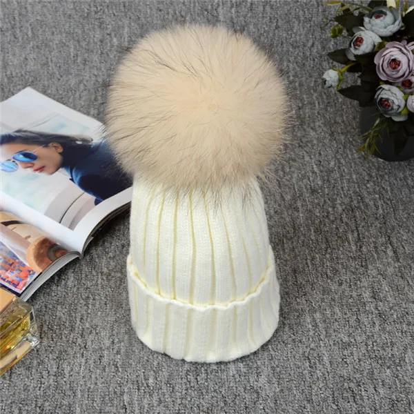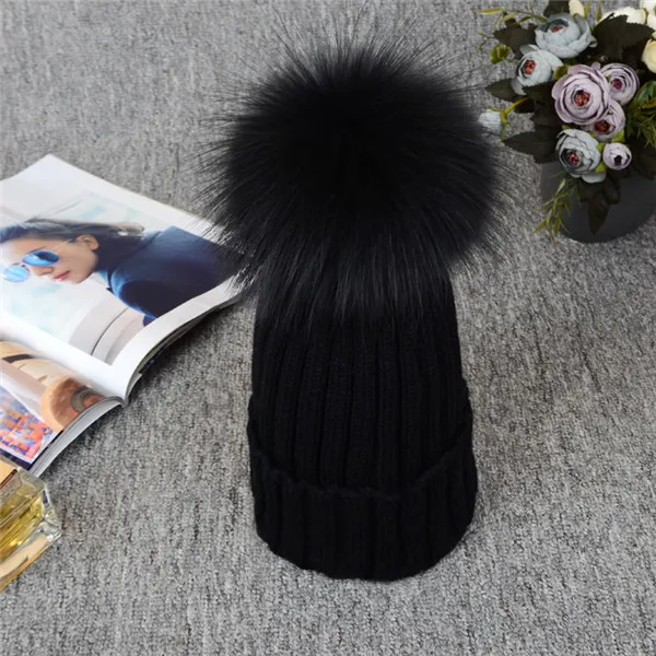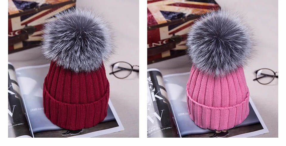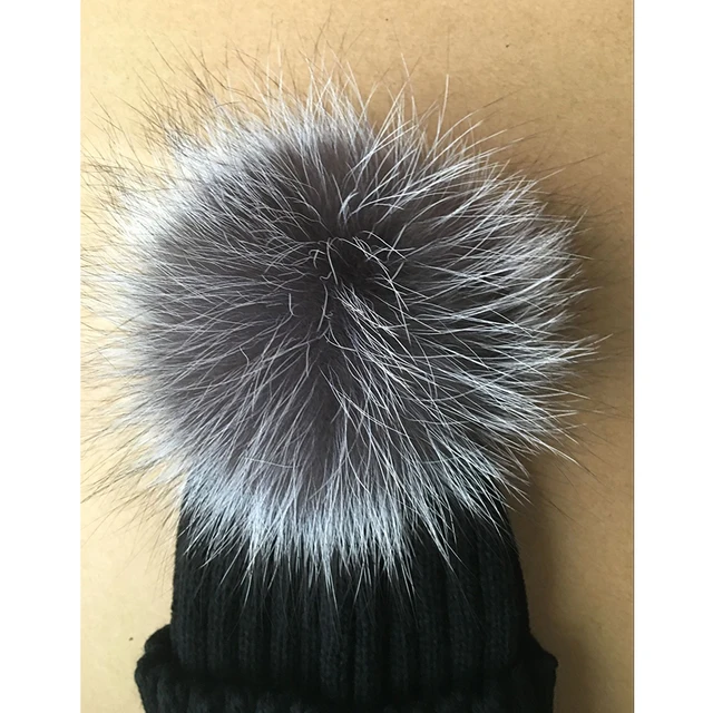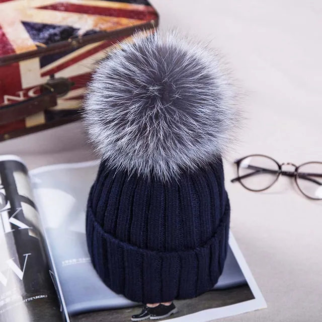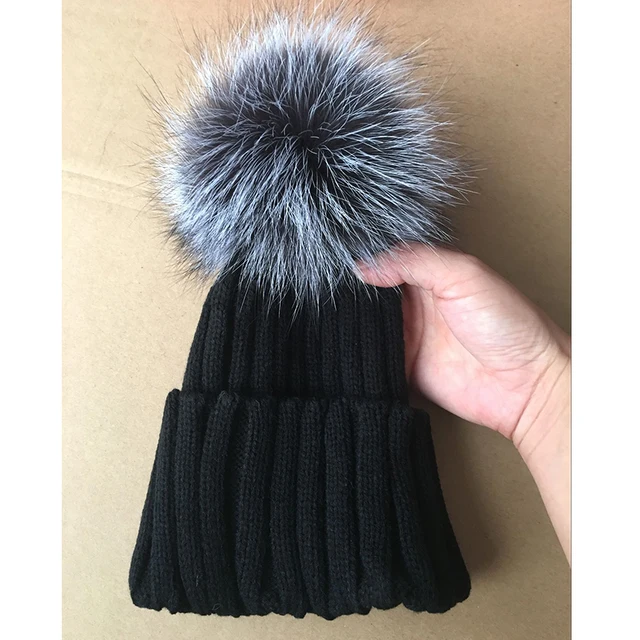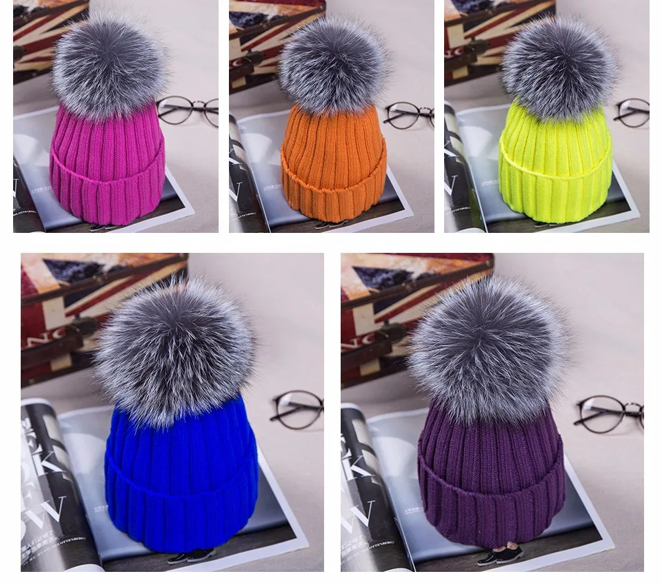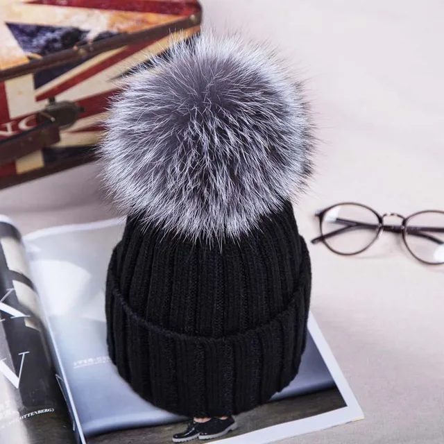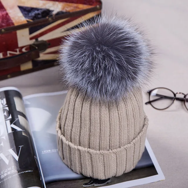 | [해외]2017 니트 모자 겨울 12 센치메터 실버 여우 모피 볼 탑 여성 아크릴 러시아어 캡 비니 캐주얼 여성의 모피 모자 |