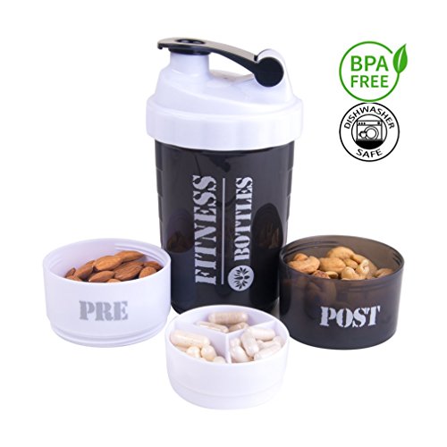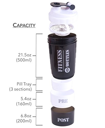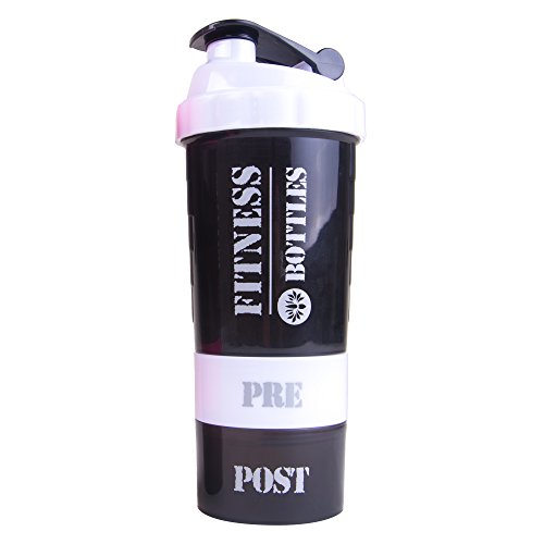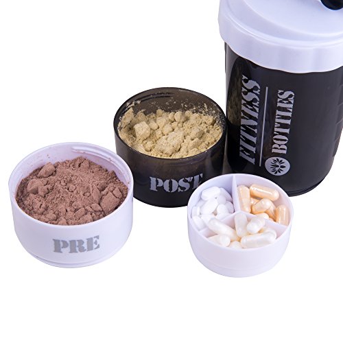 Fitness Bottles 600mL/20oz Shaker Bottle, To Go Sports Pre and Post Workout Compartment Mixer, BPA Free with Steel Whisk