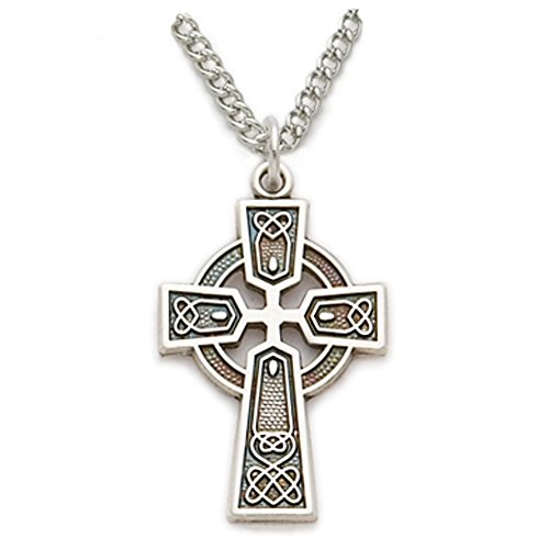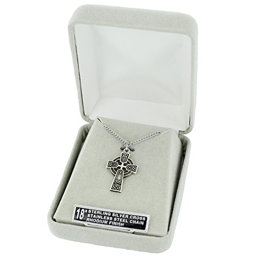 -. Title : Sterling Silver 3/4" Engraved Trinity Celtic Cross Necklace on 18" Chain