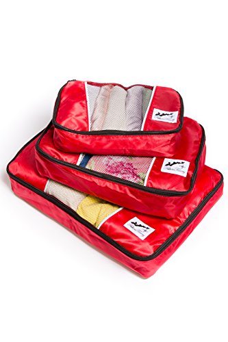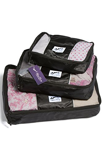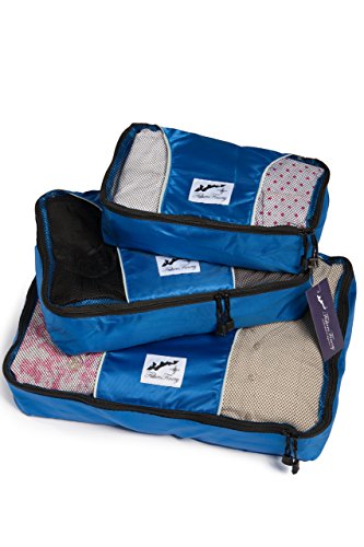 Product Description Our 3 piece packing cubes are the perfect compliment for travel. Makes packing and and unpacking a breeze. The large cube easily holds long pants and long sleeve shirts and blouses. The medium cube is generously sized to hold a variety of clothing. The small cube fits an ample supply of garments, books, or kids gaming devices. 0