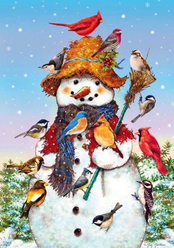 -. Feature : Fun winter puzzle with a cheerful snowman and birds / 500 laser cut wooden pieces / Contains whimsies -- shaped pieces that reflect the theme of the puzzle / Made in Great Britain