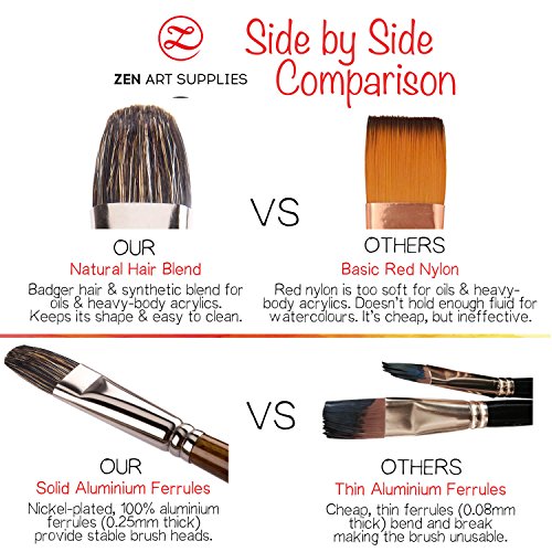 ✅ Our 6-piece set of NATURAL BADGER & 30% SYNTHETIC BLEND filbert brushes have the perfect balance of stiff & soft bristles for strong brush strokes & blending. Designed by artists & hand-crafted to ensure a longer-lasting brush that HOLDS ITS SHAPE.