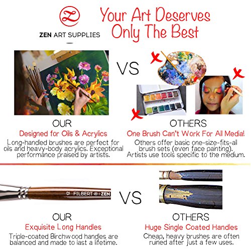Professional Artist Filbert Brushes for Oil & Heavy-body Acrylics - Long-lasting Natural Badger & Synthetic Blend - Lacquered Birchwood Long Handles - 6-pcs Set, Artist's Choice Collection by ZenArt