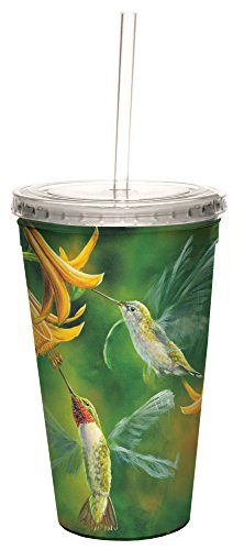 Tree-Free Greetings 35511 Mike Klafke Ruby Wings Double-Walled Cool Cup with Reusable Straw, 16-Ounce