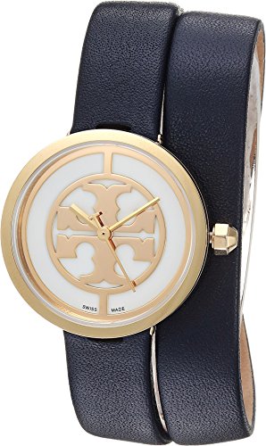 The TB4043 watch from Tory Burch® gives your look a seamless upgrade with a chic, modern twist! Gold-tone stainless steel case. Double-wrap Italian leather strap with a buckle closure. Round face. Three-hand analog display with Swiss quartz movement. Scratch-resistant sapphire crystal with anti-reflective coating. Ivory dial with smooth enamel finish features gold-tone, iconic double T logo. Octagon-shaped crown. Water-resistant to 100 feet. Swiss made. Measurements: Case Height: 28 mm Case Width: 28 mm Case Depth: 7 7⁄10 mm Band Width: 12 mm Band Circumference/Length: 14 1⁄2 in Weight: 1 oz This product may have a manufacturer's warranty. Please visit the manufacturer's website or contact us at warranty@support.zappos.com for full manufacturer warranty details.Feature
