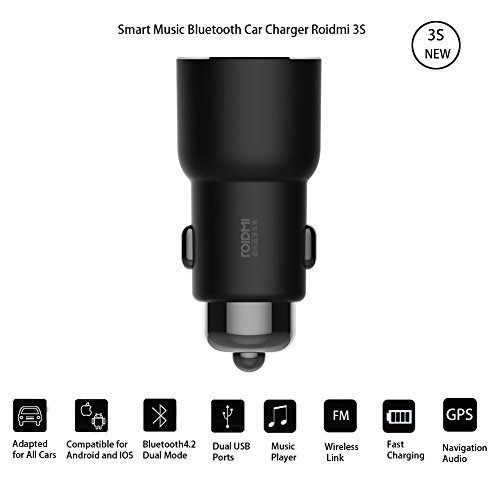 -. Title : ROIDMI 3S【2017 NEW】Wireless Bluetooth Car Charger Adapted for All Cars,5V 3.4A Dual USB Ports Fast Charge / Music Play/FM Transmitter APP Setting Control for Android & IOS (Black)