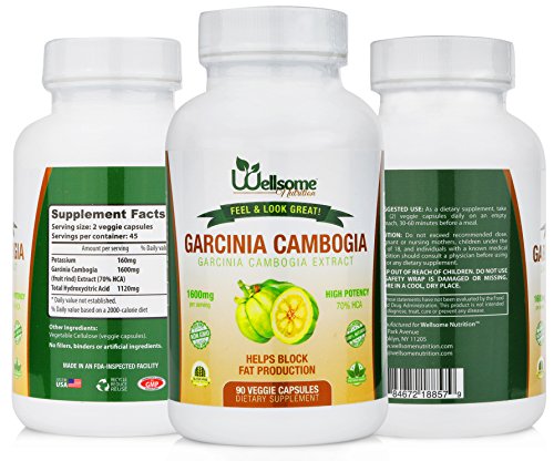 -. Binding : Health and Beauty -. Brand : Wellsome Nutrition -. EAN : 0784672188579 -. Feature : EMOTIONAL EATERS SOLUTION: Our specific garcinina formula can curb the desires to eat of emotional eaters. / 100% ALL NATURAL: Wellsome Nutrition products are gluten free, GMO free, contains no fillers, binders or any artificial ingredients at all. It is a completely natural and healthy / CONVERTS FAT TO ENERGY: This vitamin supplement can convert fat into glycogen which you can use as energy so you can exercise easier and burn more fat. / FDA -INSPECTED & USA MADE: All Wellsome Nutrition vitamin supplements are made and manufactured in the USA. All our products are also FDA-inspected and made in a GMP-certified facility with the highest certification. / 100% SATISFACTION GUARANTEED: Wellsome Nutrition Vitamin Supplements will aid you in your journey to living a healthy active life. We guarantee it! -. IsAdultProduct : 0 -. Label : Wellsome Nutrition -. Manufacturer : Wellsome Nutrition -. PackageQuantity : 1 -. ProductGroup : Health and Beauty -. ProductTypeName : HEALTH_PERSONAL_CARE -. Publisher : Wellsome Nutrition -. Studio : Wellsome Nutrition -. Title : Garcinia Cambogia 1600mg All Natural Extract With 70% HCA 0 Premium Weight Loss Management - Appetite Suppressant -90 Count- By Wellsome Nutrition -. UPC : 784672188579