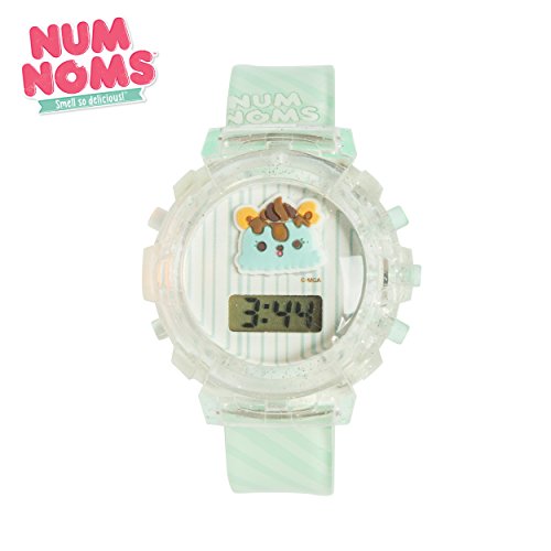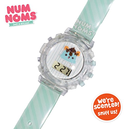 Bring the Num Noms Kids Molded Character Dial LCD Watch and surprise your child with something that is not only functional but also fun to learn. The best part about this timepiece is that it is scented and that instantly attracts your child to it. The LCD display with laser molded dial of this watch makes it easy for your child to learn reading time and numbers. The printed art on its scented jelly strap lends a stylish look to the watch while the glitter jelly case keeps it protected from scrapes and scratches when your child is playing.Feature