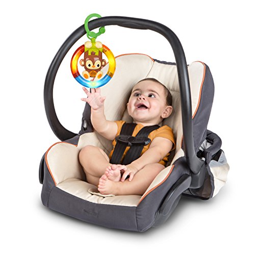 Fun Comes First. Baby triggers the lights & sounds of the Shake & Glow Monkey when baby "shakes up the fun". The monkey swings back and forth when baby bats. Introduces baby to cause and effect. Lights and bright, fun colors on the easy to grasp toy support visual stimulation. This take-along toy is perfect for on-the-go fun. Link attaches to most carriers, strollers, and Bright Starts products with links. Recommended for babies 3 months and older.Feature