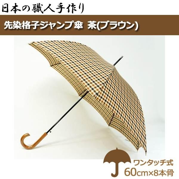 雨の日のお出かけが楽しくなるようなオシャレなチェック柄のジャンプ傘♪「先染め生地」は、あらかじめ糸の段階から染色加工を行う事により、1本1本の色糸が微妙な色のハーモニーを奏で、織物の持つ独特の風合いを楽しめます。匠の名人技で一本一本手作りした本物志向の逸品です。 |