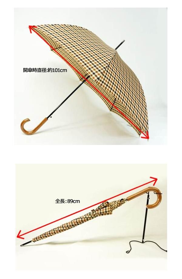 | サイズ | 60cm×8本骨、全長:89cm、開傘時直径:約101cm 個装サイズ:95×16×5cm |
