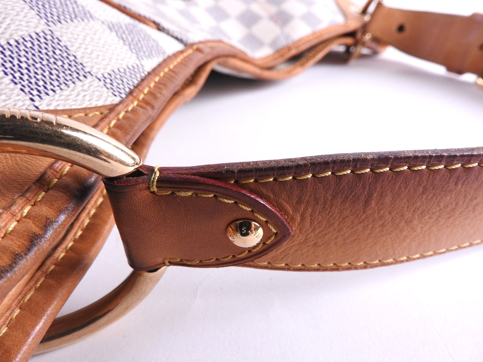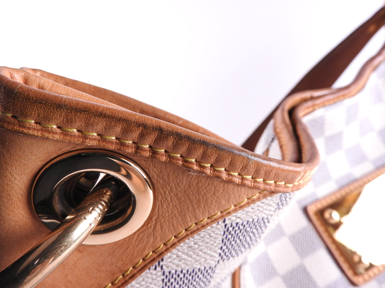 Damier azur: Used feeling. Some stains at the bottom. Leather: Used feeling. Some stains, abrasions and tanning. |