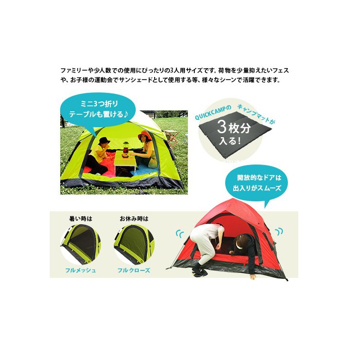 원본상품명: ワンタッチテント 3人用 UVカット フルクロズ キャンプ アウトドア ワンタッチ レッド QC-OT210/ALOT-001