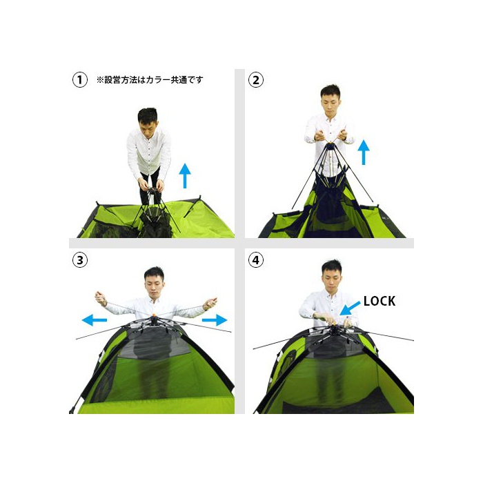 업 텐트와 같은 수납시의 수고는 없고, 버튼을 눌러 접는산과 같이 모으는 것 뿐(만,만큼).페그(말뚝) 없이도 자립 하므로 비상시에도 최적입니다.