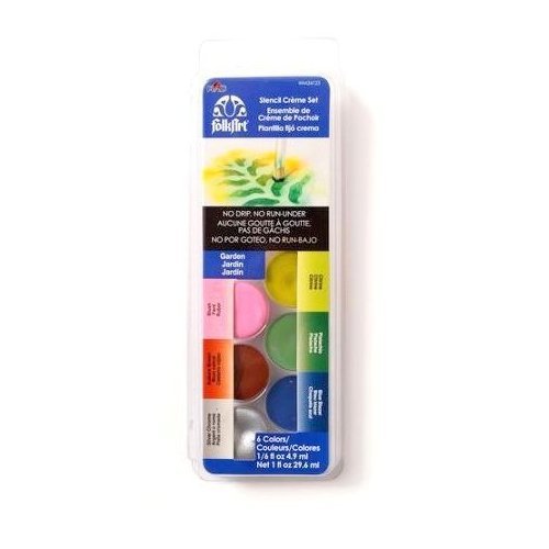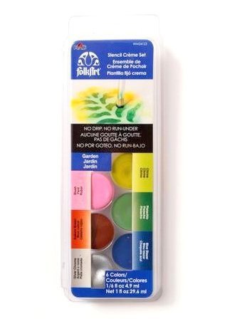 Master stenciling with FolkArt Dry Brush Stencil Paint sets, a long-time favorite with home décor stencilers. Now you can stencil with no mess and no drips! The longer open time also allows for easy blending and shading, enabling you to build colors from soft to bold. The self-sealing formula will prevent drying out and helps to eliminate run-unders. This 6-color Naturals kit contains colors Silver Chrome, Auburn Brown, Gold Medal, Gray Mist, and Sable Brown.