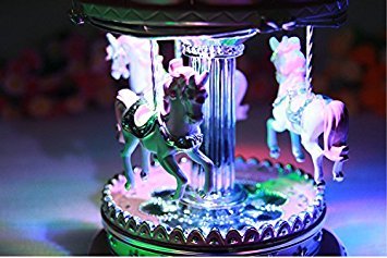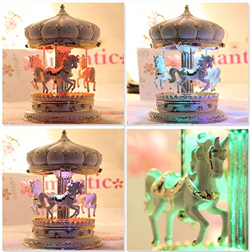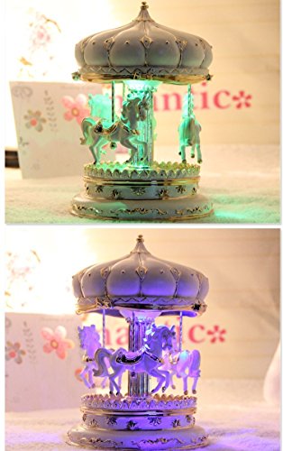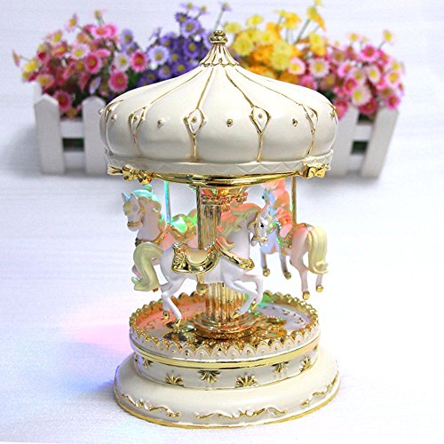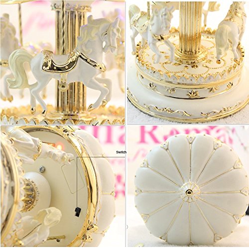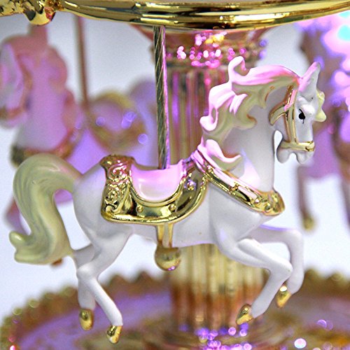 LIWUYOU Merry-Go-Round Music Box Carousel Horse Luxury Large Color Change LED Light Luminous Rotation With the Castle in the Sky Color Beige