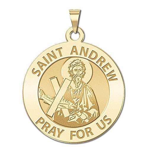 -. Title : Saint Andrew Religious Medal - 3/4 Inch Size of a Nickel - Sterling Silver