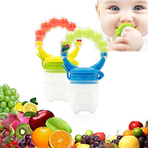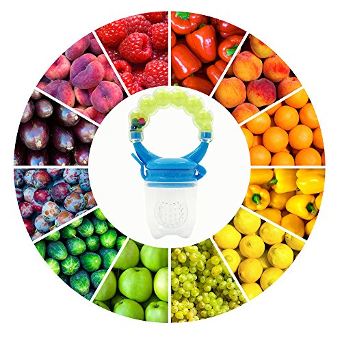 -. Feature : ★Safe and High Quality Baby Food Feeder-Made from the highest food grade silicone which is BPA Free, Lead Free, Petroleum Free, Latex Free and Phthalates Free. These baby fruit pacifier feeders are designed for teething baby boy and girl aged 6-12 months. / ★Fresh Food and Fruit Feeder- Parents can put a vast variety of fruits and vegetables,especially frozen breeding milk,strawberry,smashed banana in this food pacifier.And baby enjoy every delicious food and soothe teething pain,without chocking risk,which brings a new and pleasant experience to them. / ★Bright Colour and Ringing Handgrip-The food feeder handle has colorful beads and texture in it, which really help to hold baby's attention to it.baby are able to hold onto it by themselves and keep it in their mouth on their own, using the wide, easy grip handle.It exercise baby fingers flexibility and stimulate them to get food. / ★Easy to Clean and Hygiene-This feeder pacifier is a simple combination,so parents only wash it with warm soap water, or boil to sterilize.And it is convenient to carry it in travel or storage in fridge for its dust cover. / ★Perfect Baby Shower Gift-This is a considerate and sweet gift for your friends who have newborn baby.It is funny food feeder for baby to ease their teething.