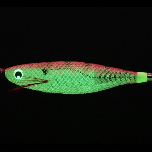 -. Feature : State of the art glow in the dark technology mimics squid prey / Swivel line tie for effortless life-like movement / Perfectly blanced, super strong set of hooks / Weight: 5/16oz / Diver depth: All feet