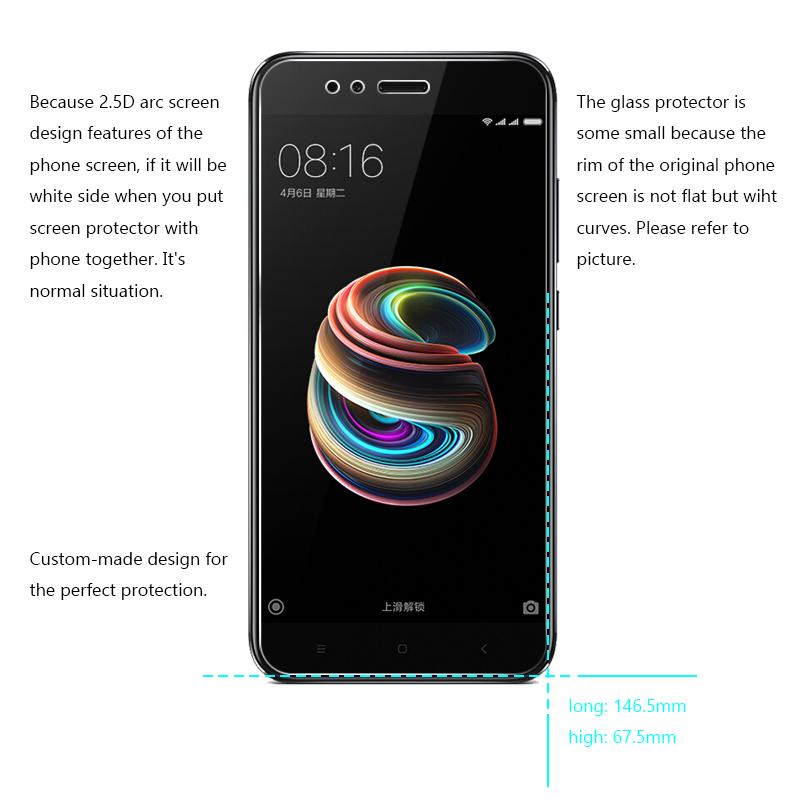 2 Pcs/Lot 2.5D 0.26mm 9H Premium Tempered Glass Foru0026nbsp;Xiaomi MiA1 MI A1 Screen ProtectorToughened protective film