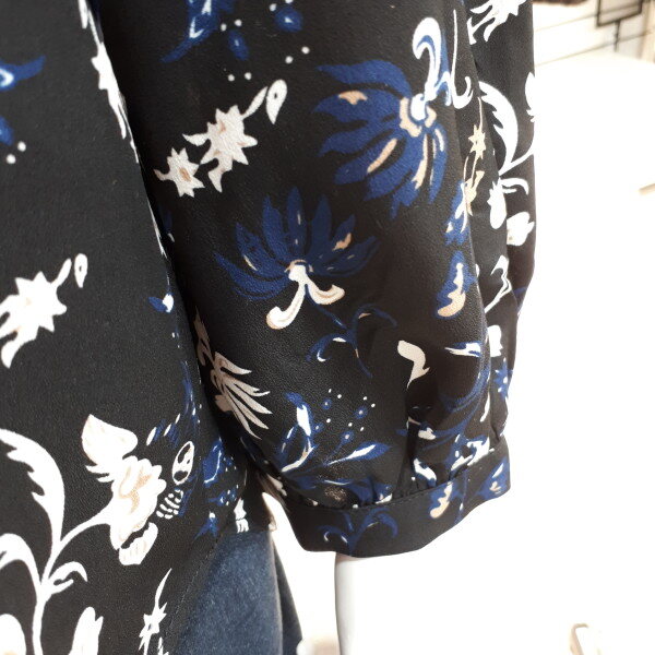 프린트로 러블리한 느낌을 자아내는 블라우스 입니다. 일자빗으로 활동성이 좋습니다.
