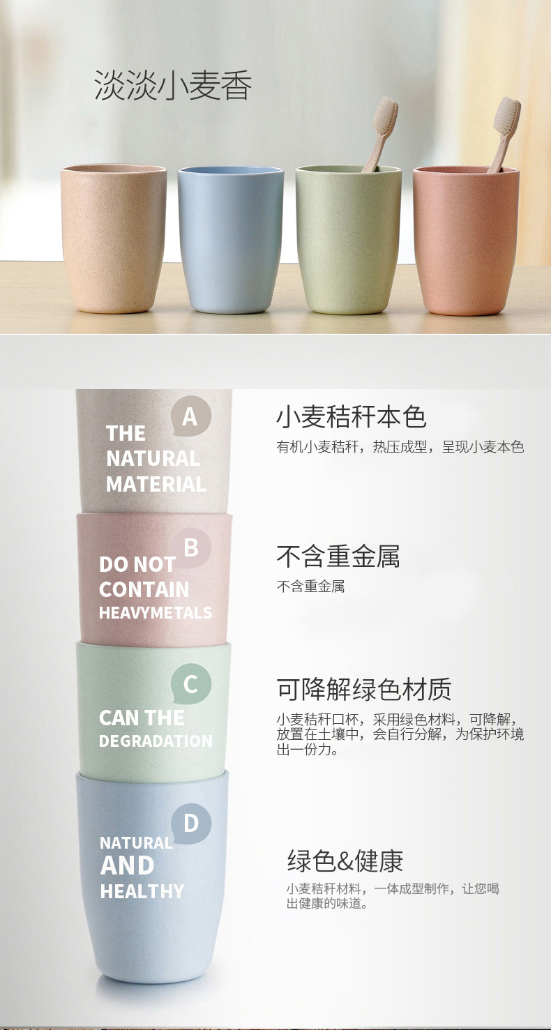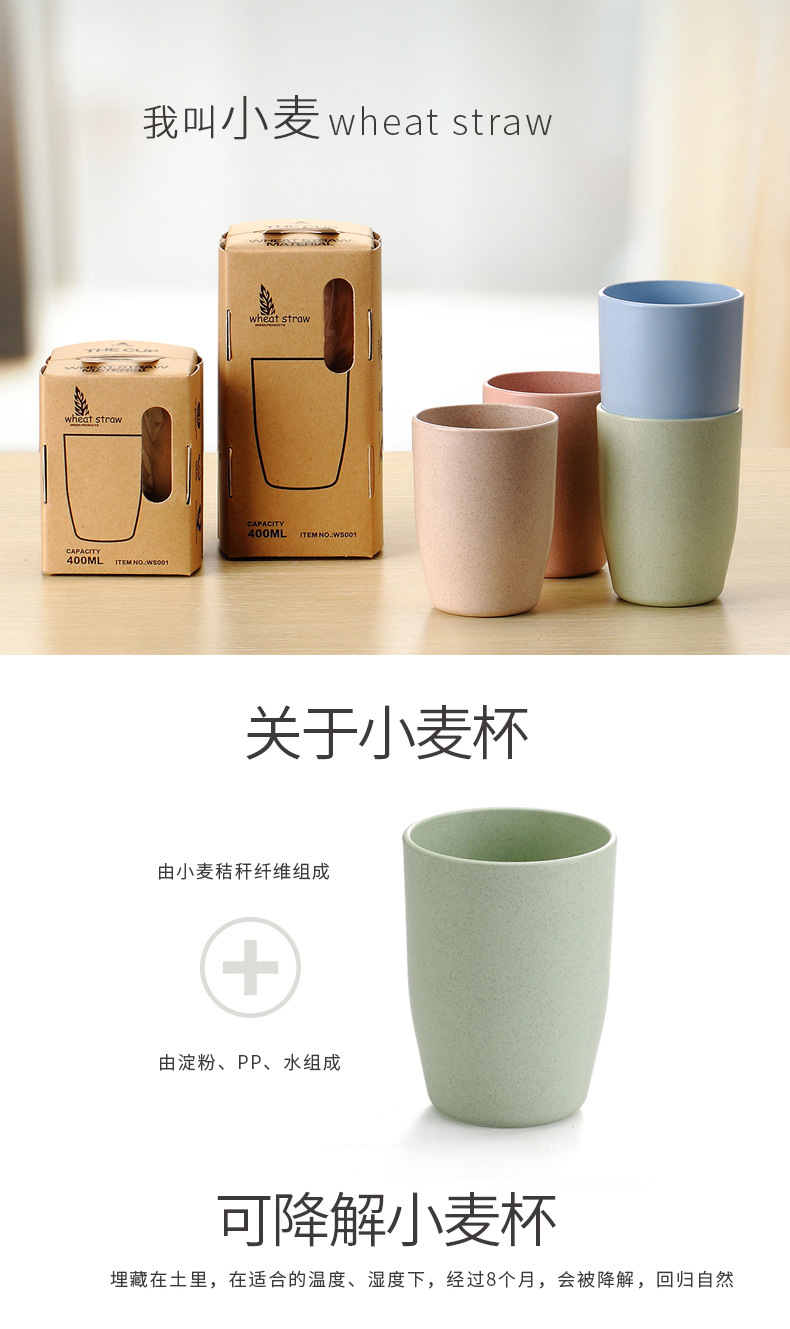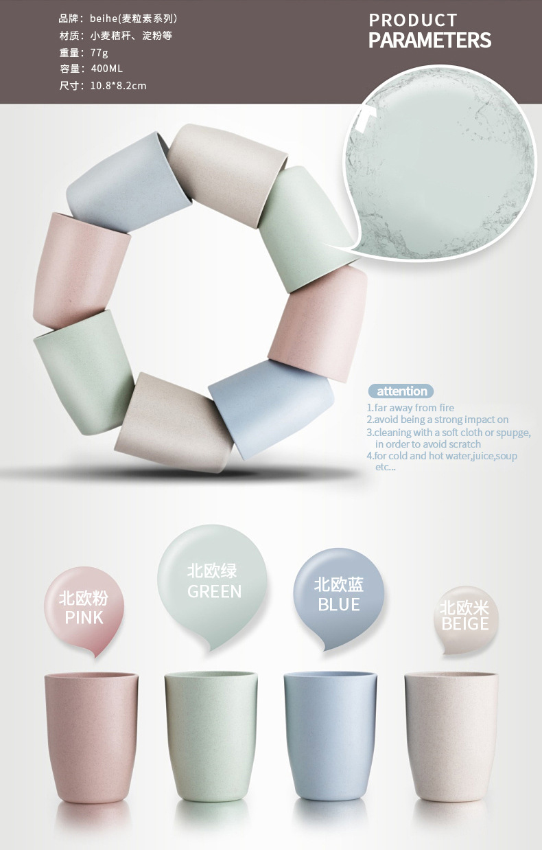 本宝贝描述均属于实物拍照,产品图片仅供参考;本款宝贝采用绿色环保小麦材质,小麦秸秆+淀粉+定型机(pp)含有50%的pp成分,实质是一种生物塑料,与工程塑料是不同的,无毒健康的材质,更环保哦;杯子采用倒扣设计,快速晾干杯底,干净透气,不滋生细菌哦;杯柄设计贴合拇指凹槽,更舒适贴心呢。四色可选,