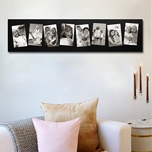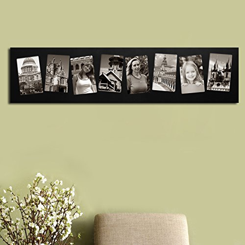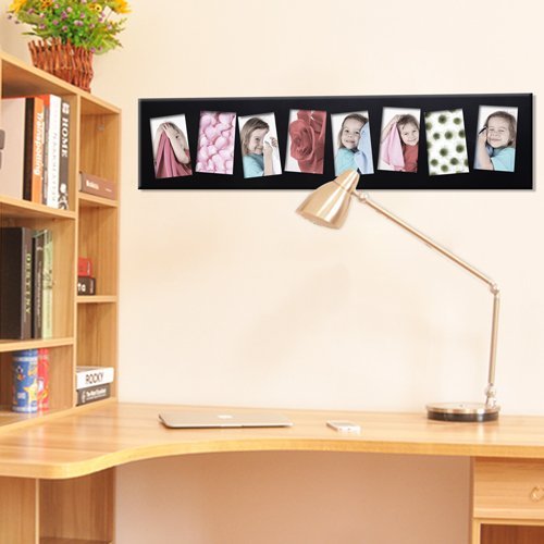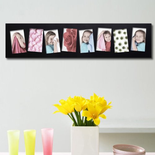 This fun, multi-photo frame is a dynamic addition to any room. The matte finish highlights a slanted, accordion-style row of images - the perfect fit for a collection of family photos, outings with friends or remembering a special event. Space for eight 4x6" photos and the option to hang horizontally or vertically gives you the freedom to display your favorite snapshots however you want. Order a few for birthday or wedding gifts, or create an eye-catching collage for your living room or bedroom.Feature