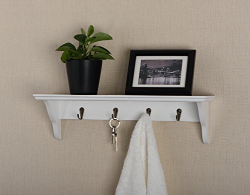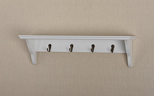 V-LIGHT VW161023W 4 Hook Wood Wall Shelf, White