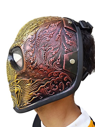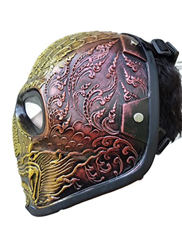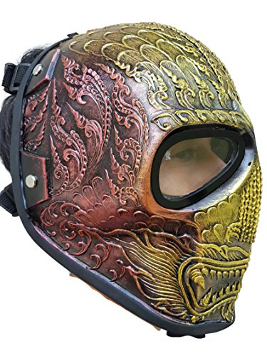 -. Feature : The tactical Airsoft Mask is designed to deliver very wide vision for optimal peripheral view. For extended wear on warm days, Eye protection, our lens can be protect 500 fps up from plastic bullets because thickness Lens gives an inaccurate vision. With a lens of 5 cm wide and 8 cm long 10 mm depth which is a bigger size. Airsoft eyes mask is equipped with an anti-fog lens. Most have an extremely high visibility rating, will shade your eyes from the sun. / An essential piece of safety cover provides highest protection. Keep your face protected safe and soft with cushion inside easy to breathe in, has given more space between your nose and mouth. All mark can be add LEDs on the lenses for cool. / All mask make by handmade product. We don't only choose the innovation of fiberglass to be a main material, it is lighter and stronger than metal sheet, using fiberglass for airsoft mask definitely improves its esthetics, but we also got several of cool face masks that will be sure to intimidate your competitors. / Free size Adjustable and supporting wearing your mask with locks on every strap and adjustable liners for firmness and having a small pocket at the back of the straps. / All mask suitable for all ages and Season such as Festival, Costumes, Halloween, Cosplay, DJ mask, Party, Acting, Gift, Driving motorcycle etc.