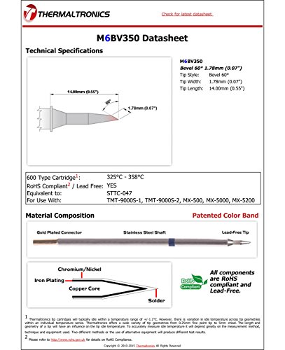 Thermaltronics M6BV350 Bevel 60deg 1.78mm (0.07") interchangeable for Metcal STTC-047